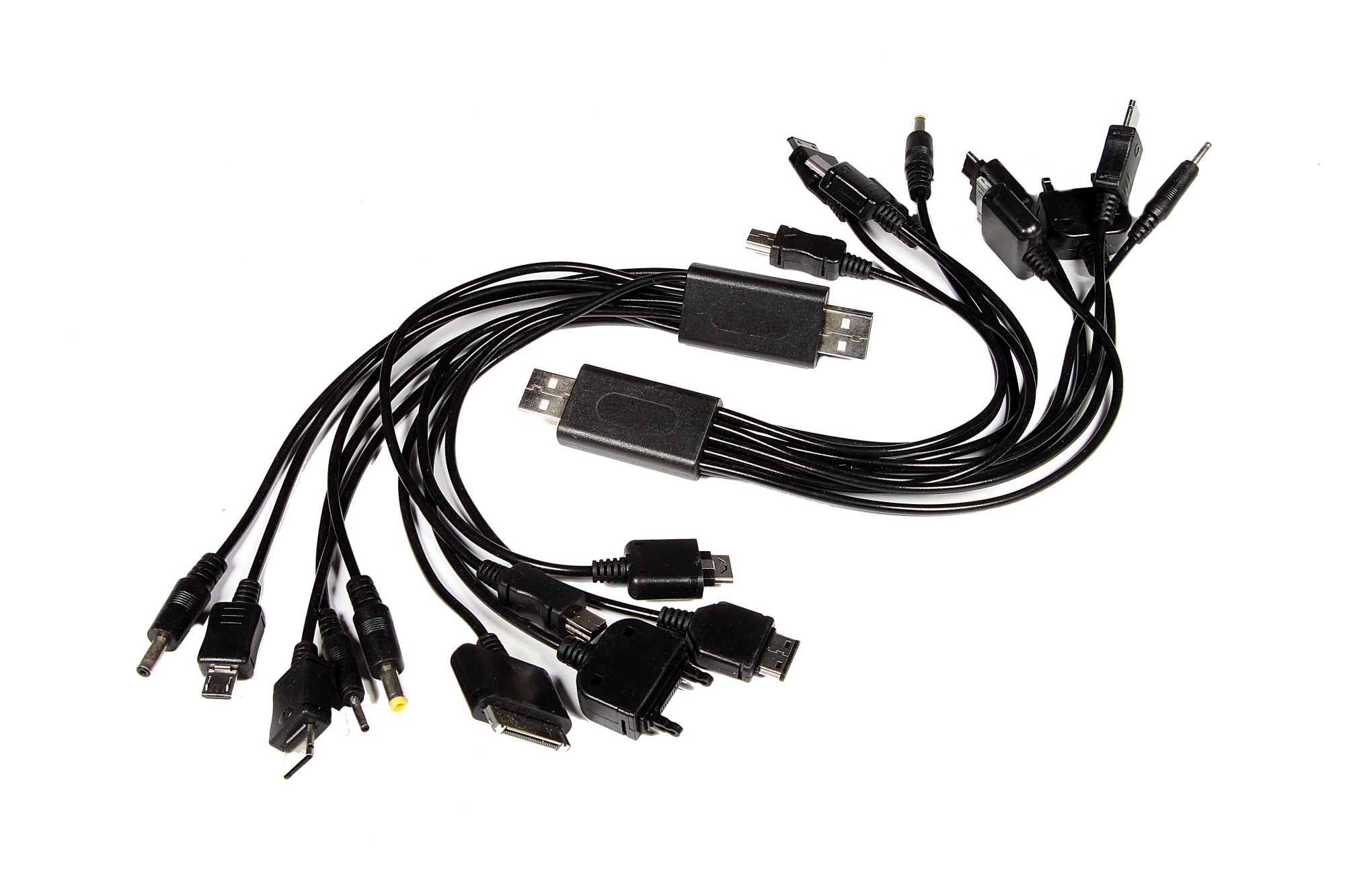 Многие пользователи мобильных телефонов отдают предпочтение не одному конкретному мобильному оператору связи, а сразу нескольким, что и заставляет их носить при себе сразу несколько аппаратов. Поэтому, с проблемой разряженной батареи и отсутствием необходимой зарядки они сталкиваются часто, а иметь при себе сразу целый набор зарядок или USB проводов, неудобно. Компания No Name заботится об обладателях мобильных телефонов и другой техники и предлагает купить универсальное устройство - USB Провода No Name 10 в 1. Он представляет собой своеобразную косичку со штекером USB на одной стороне, и 10 самых распространенных видов штекеров для мобильных девайсов, с другой стороны. Имея под рукой такой набор, вы всегда сможете зарядить от USB- порта или синхронизировать свой гаджет с любым компьютером.